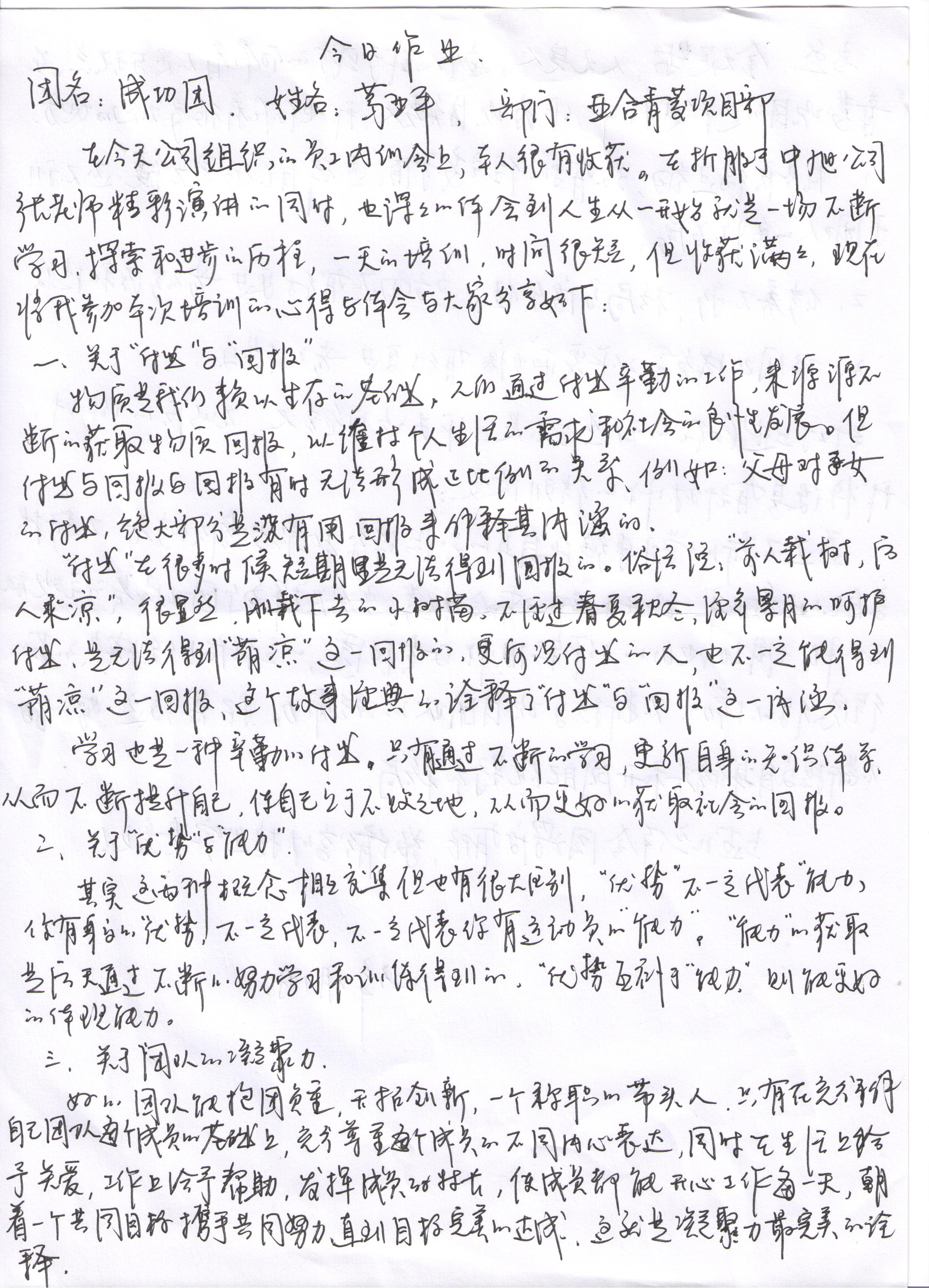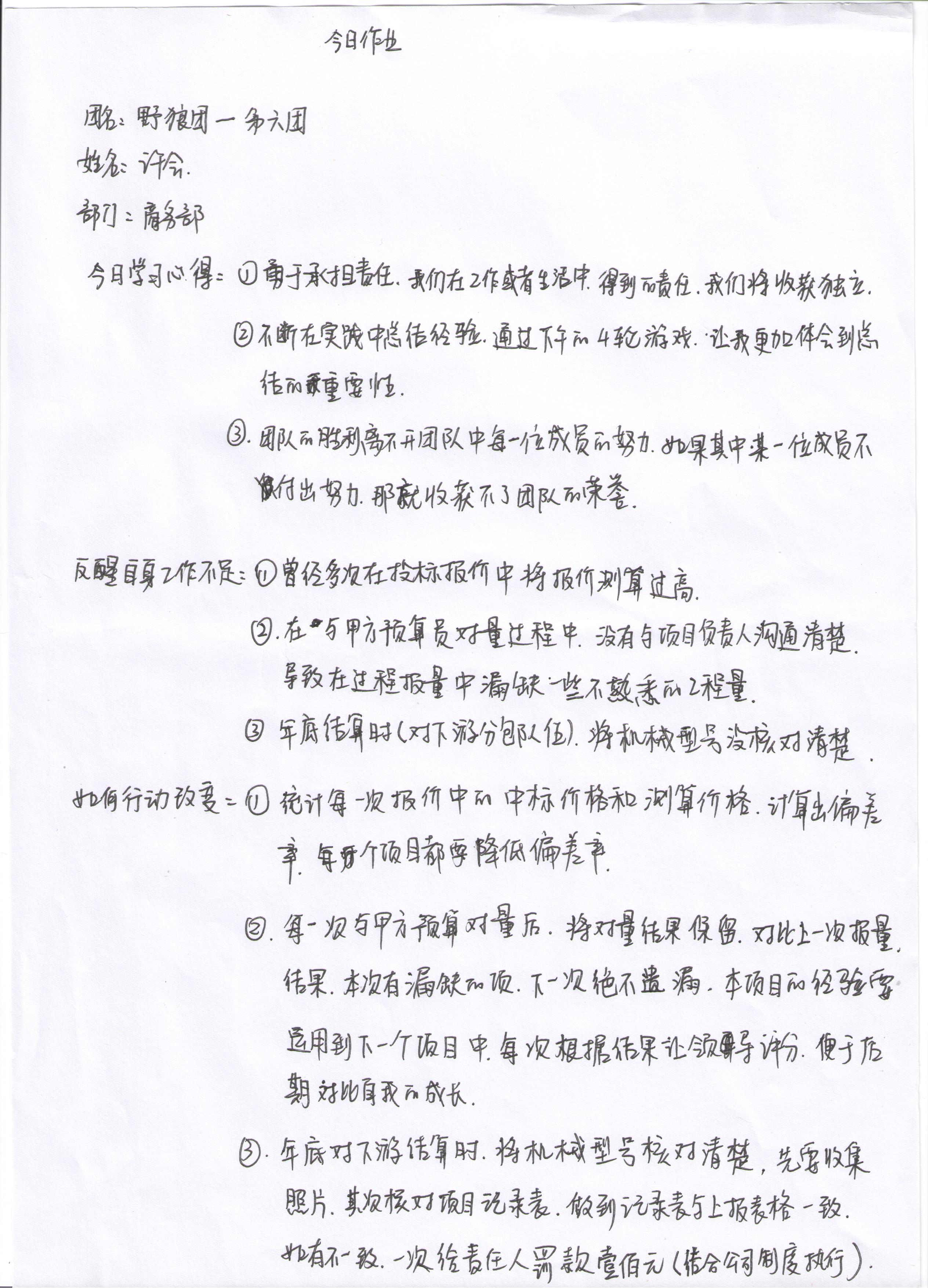 通過此次的培訓(xùn)活動(dòng),員工思想得到啟發(fā),重新認(rèn)識(shí)和審視了自我,同時(shí)也感受到了溝通、合作和執(zhí)行力的重要性。每一位員工在實(shí)踐中學(xué)習(xí),在體驗(yàn)中改變,受益匪淺,深深體會(huì)到了“沒有優(yōu)秀的個(gè)人、只有優(yōu)秀的團(tuán)隊(duì)”的精髓。