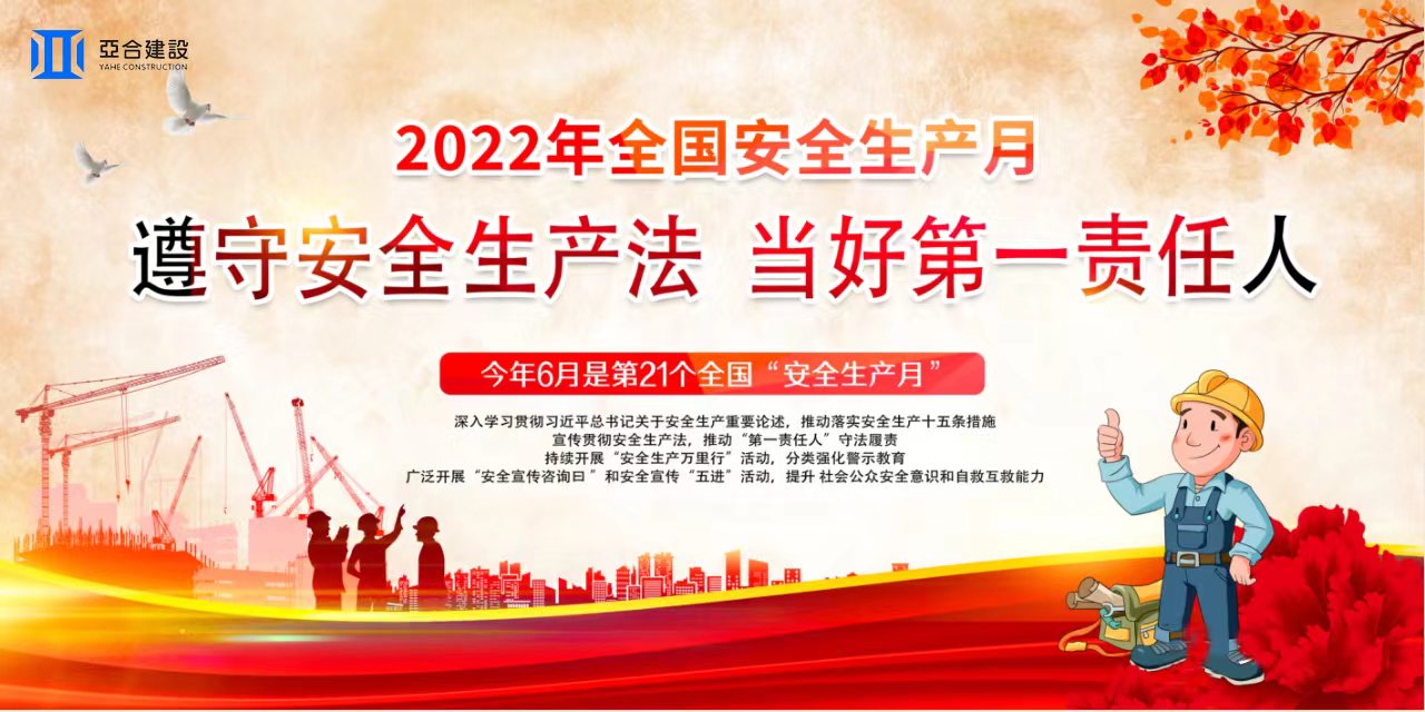 2022年6月是第21個全國安全生產(chǎn)月,主題為“遵守安全生產(chǎn)法,當(dāng)好第一責(zé)任人”。6月8日,湖北亞合建設(shè)于青菱產(chǎn)業(yè)園項目部舉行2022年“安全生產(chǎn)月”啟動儀式,主要任務(wù)是深入貫徹落實安全生產(chǎn)工作部署,全面部署公司“安全生產(chǎn)月”工作,公司總經(jīng)辦、安環(huán)部及各項目部管理人員參加了會議。
