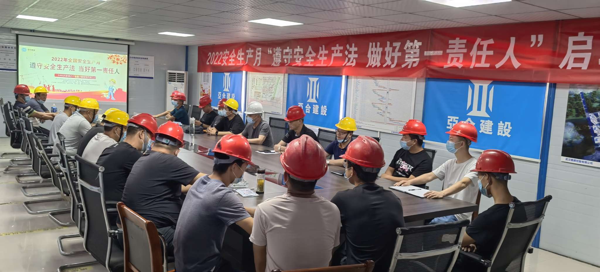 2022年6月是第21個全國安全生產(chǎn)月,主題為“遵守安全生產(chǎn)法,當(dāng)好第一責(zé)任人”。6月8日,湖北亞合建設(shè)于青菱產(chǎn)業(yè)園項目部舉行2022年“安全生產(chǎn)月”啟動儀式,主要任務(wù)是深入貫徹落實安全生產(chǎn)工作部署,全面部署公司“安全生產(chǎn)月”工作,公司總經(jīng)辦、安環(huán)部及各項目部管理人員參加了會議。