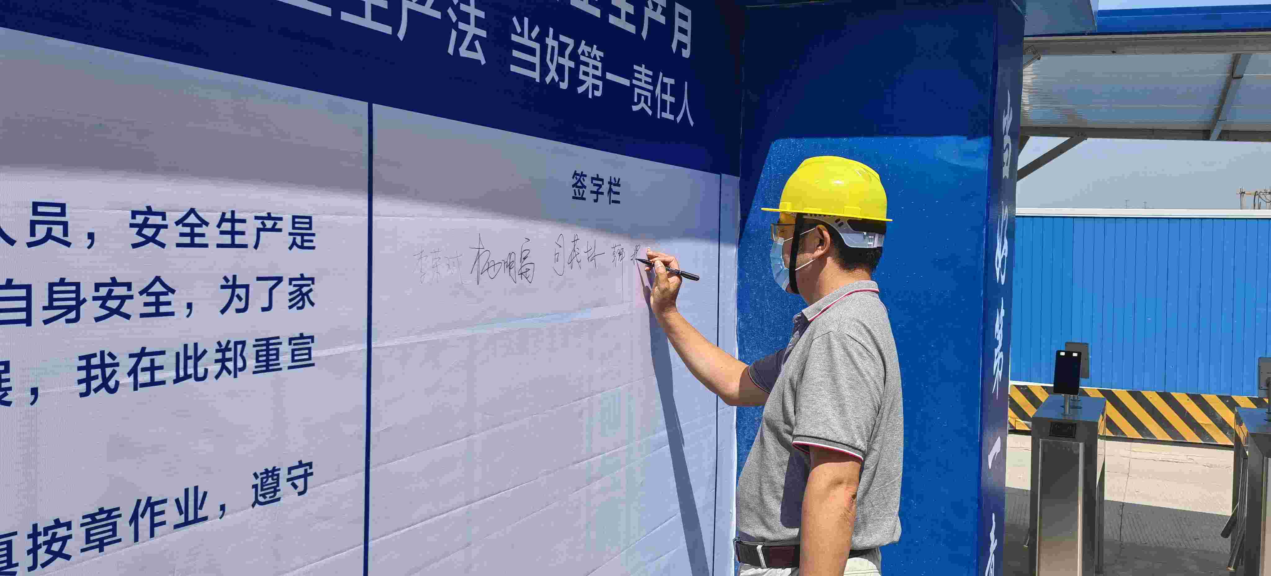 儀式最后,安環(huán)經(jīng)理韓衛(wèi)帶領(lǐng)全體人員來到“遵守安全生產(chǎn)法,當(dāng)好第一責(zé)任人”宣傳墻上進(jìn)行莊嚴(yán)宣誓并簽字承諾。啟動儀式營造了良好的安全生產(chǎn)氛圍,提高了全員的安全思想認(rèn)識,取得了圓滿成功。